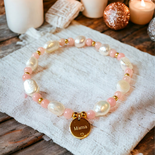 Mama Armband aus Süßwasserperle / Edelstahl vergoldet