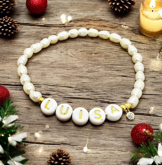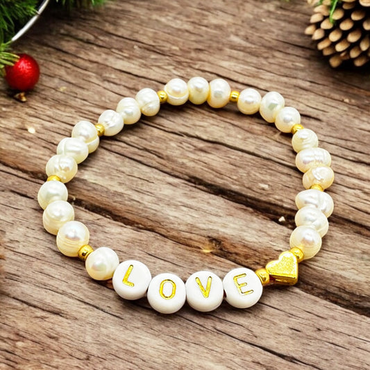 Süßwasserperlen Armband LOVE / individueller Name