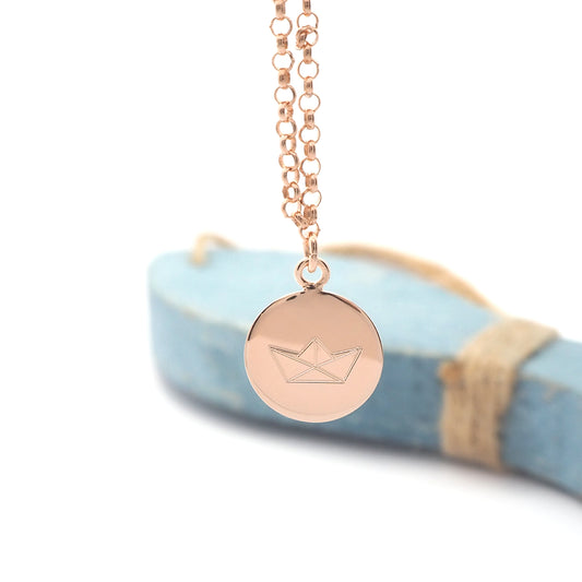 Origami Papierboot Kette / 925er Sterling Silber 18k rosévergoldet / Erbskette