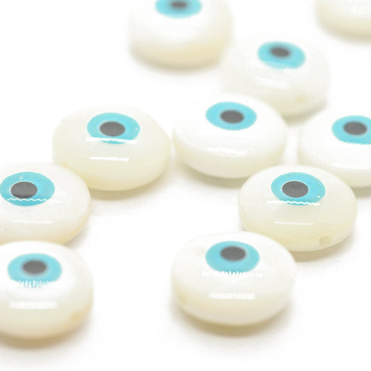 Perlmutt Perle rund / Greece Evil Eye / weiss / 10mm