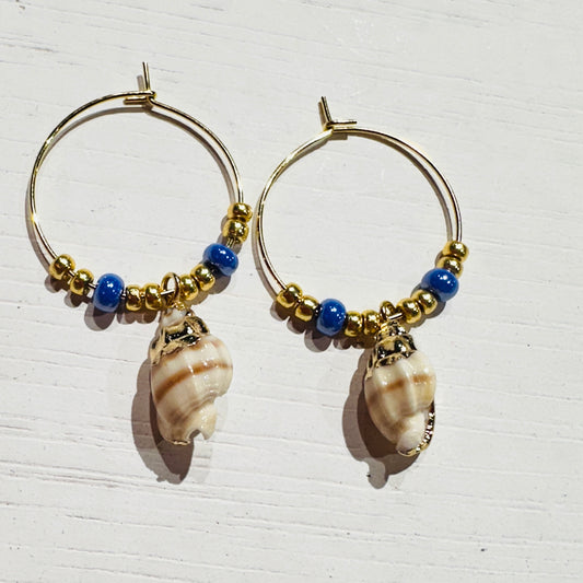 Shell pendant with pearl / gold colored / 15 mm