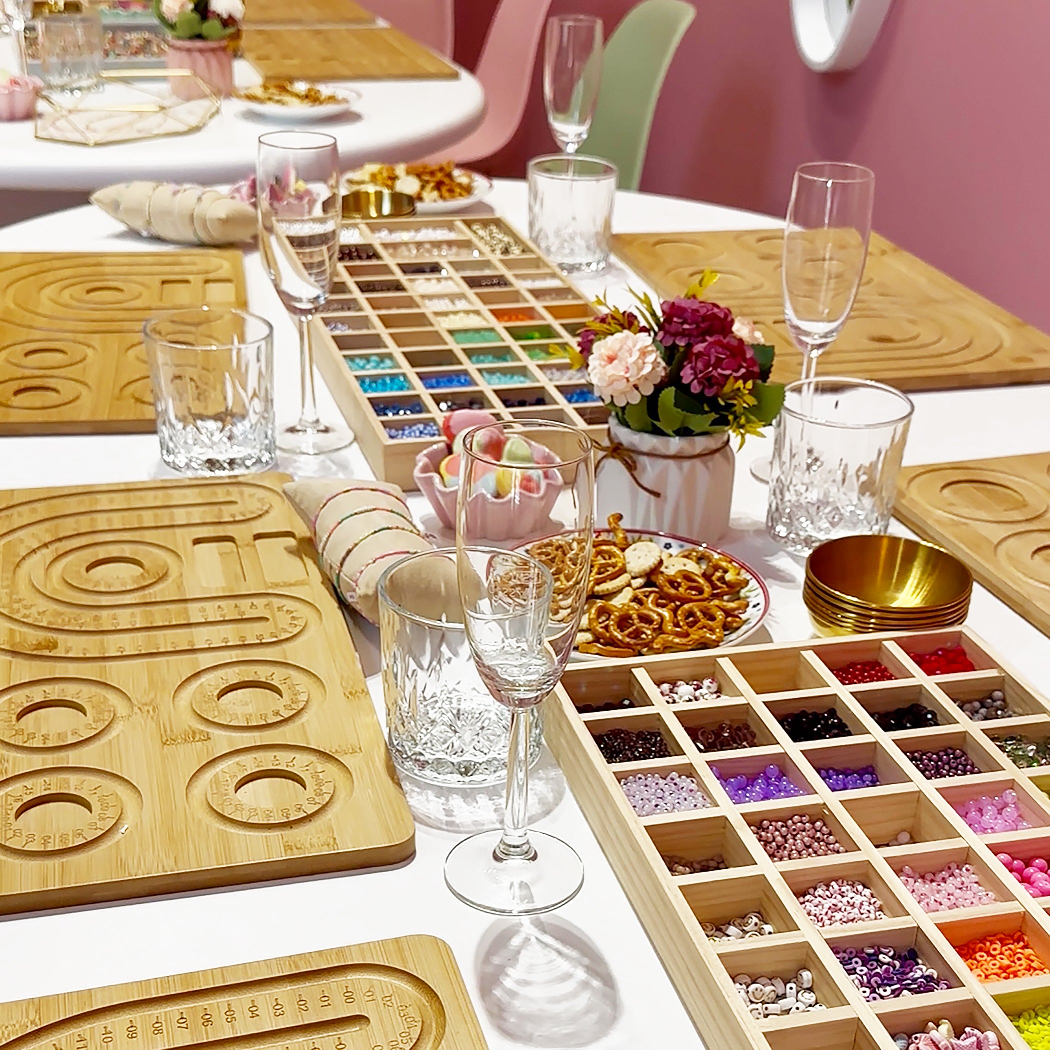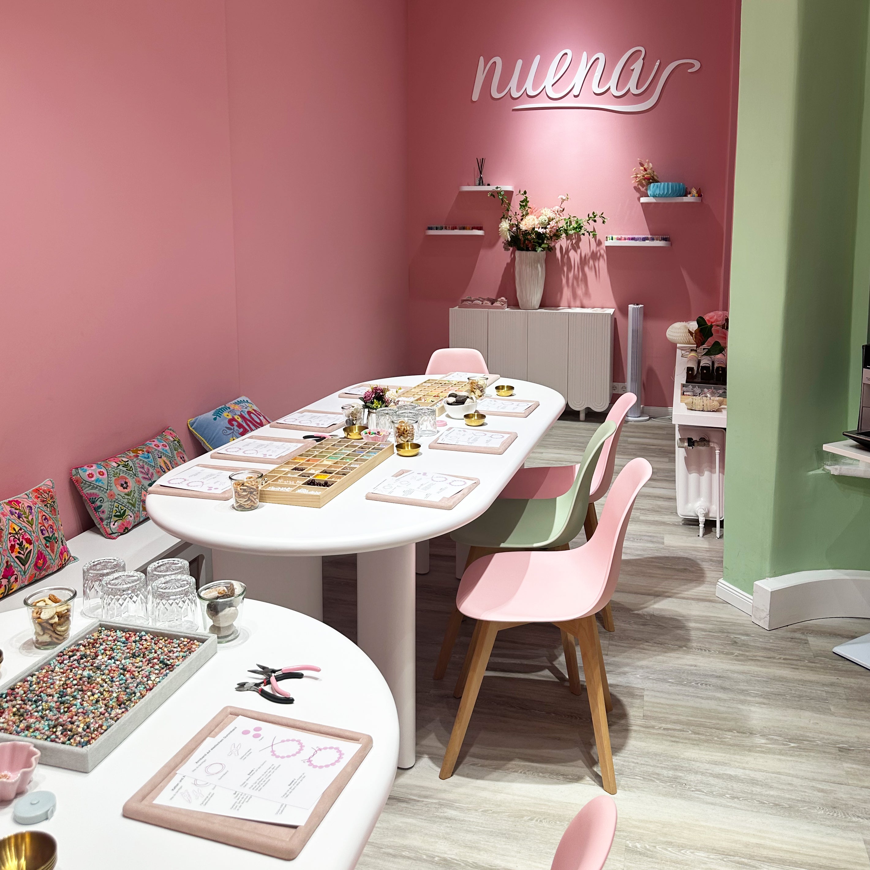 Workshop buchenWir vermitteln Euch in unserem exklusivem Studio bei Getränken & Snacks grundliegende Basics, die Ihr zum Schmuck selber fertigen benötigt.